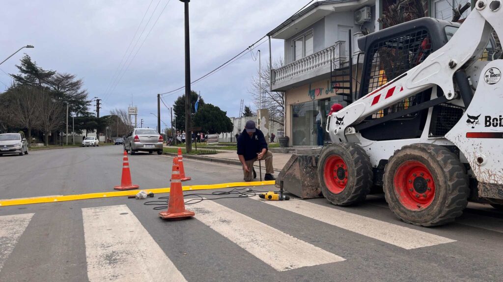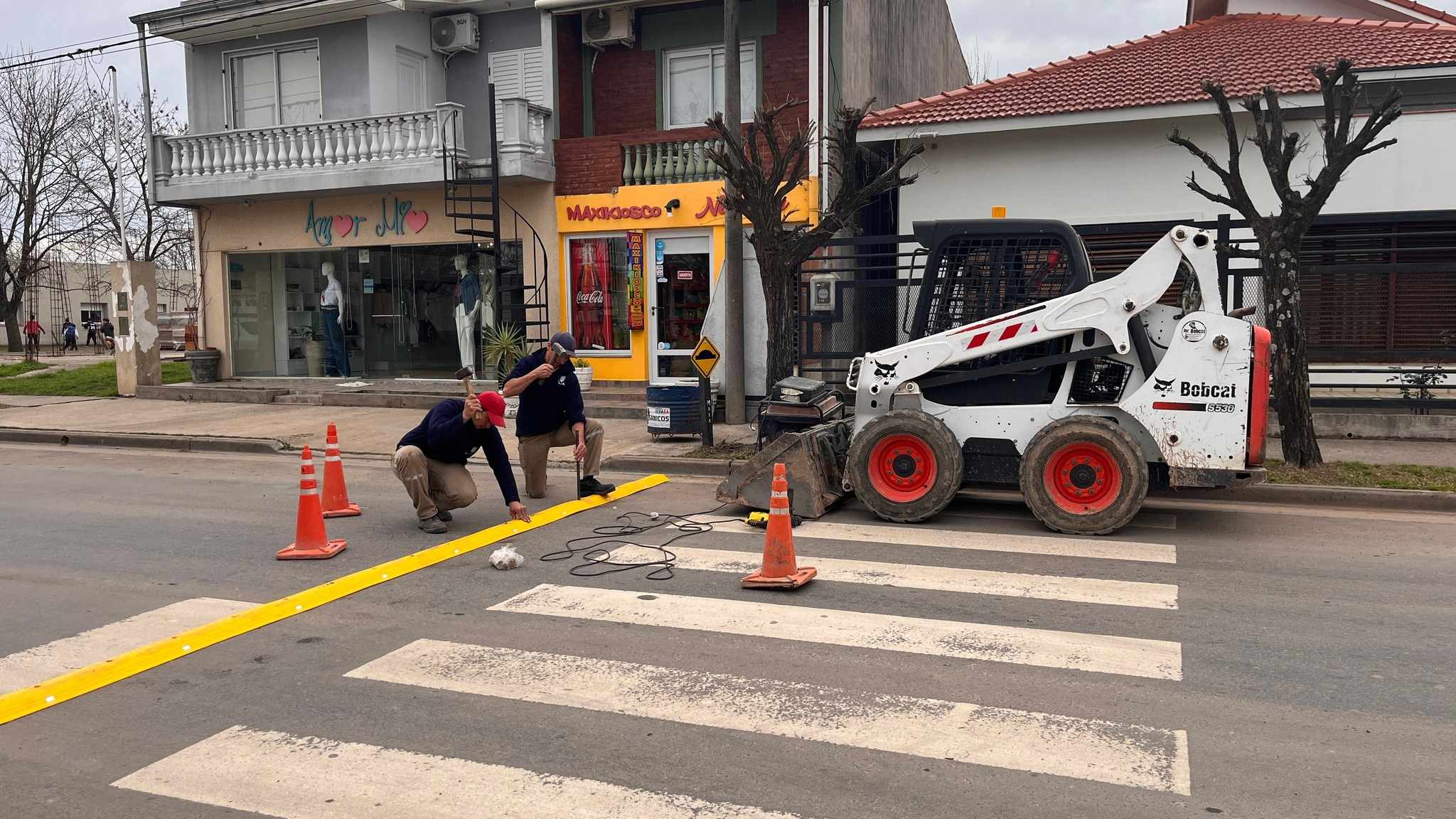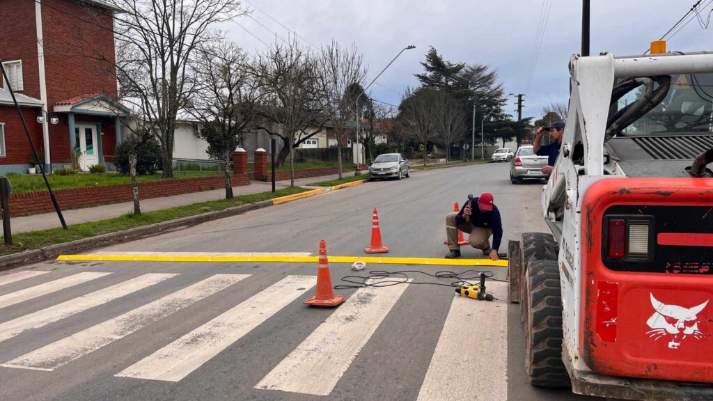 Bajo la supervisión del responsable de tránsito, Gabriel Moreyra, el personal municipal ha instalado diversos reductores de velocidad sobre la avenida Los Inmigrantes.