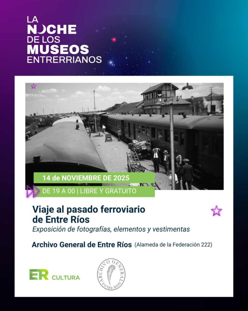 Este viernes 14 de noviembre, de 19:00 a 00:00 horas, el Archivo General de Entre Ríos abrirá sus puertas como parte de la Noche de los Museos Entrerrianos, una propuesta cultural con entrada libre y gratuita que invita a recorrer espacios patrimoniales de la ciudad.
