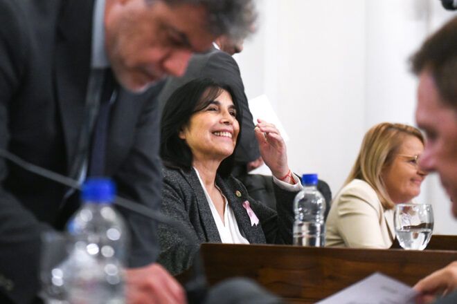 En el recinto de la Honorable Cámara de Senadores, la vicegobernadora y presidente del cuerpo, Alicia Aluani, presidió este miércoles la 16ª Sesión Ordinaria correspondiente al 146º Período Legislativo. Estuvo asistida por el secretario de Cámara de Senadores, Sergio Avero y la prosecretaria, Sara Foletto. La sesión contó con la presencia de 16 legisladores y quorum reglamentario. El senador Martin Oliva (Uruguay – Más para Entre Ríos) justificó la ausencia de su par Patricia Día (La Paz – Más para Entre Ríos).