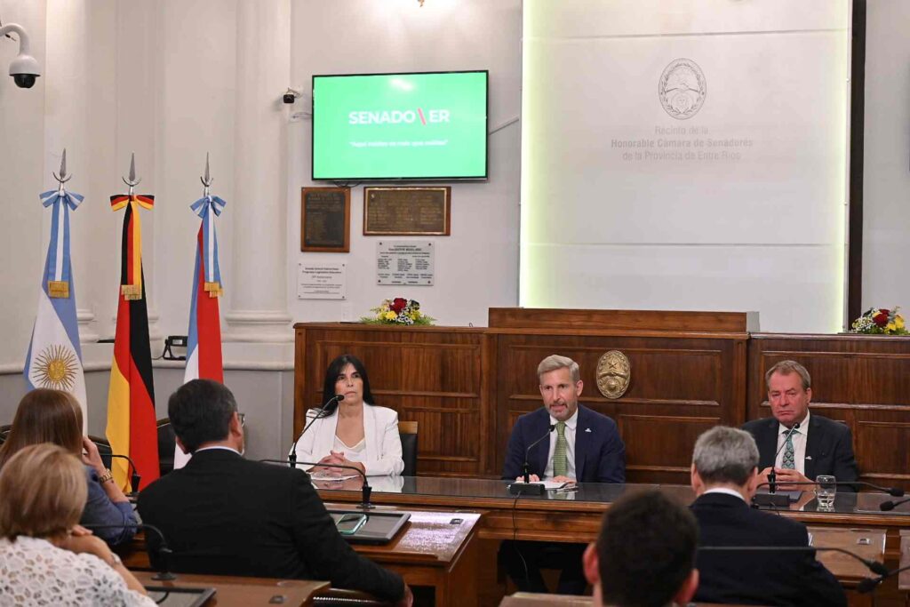 Más tarde, el gobernador y el embajador participaron del acto central por los 200 años de la inmigración alemana en Argentina, realizado en el recinto de la Cámara de Senadores. Allí, Frigerio destacó el valor institucional y simbólico del encuentro con la delegación bávara, representantes de la comunidad alemana y legisladores entrerrianos.