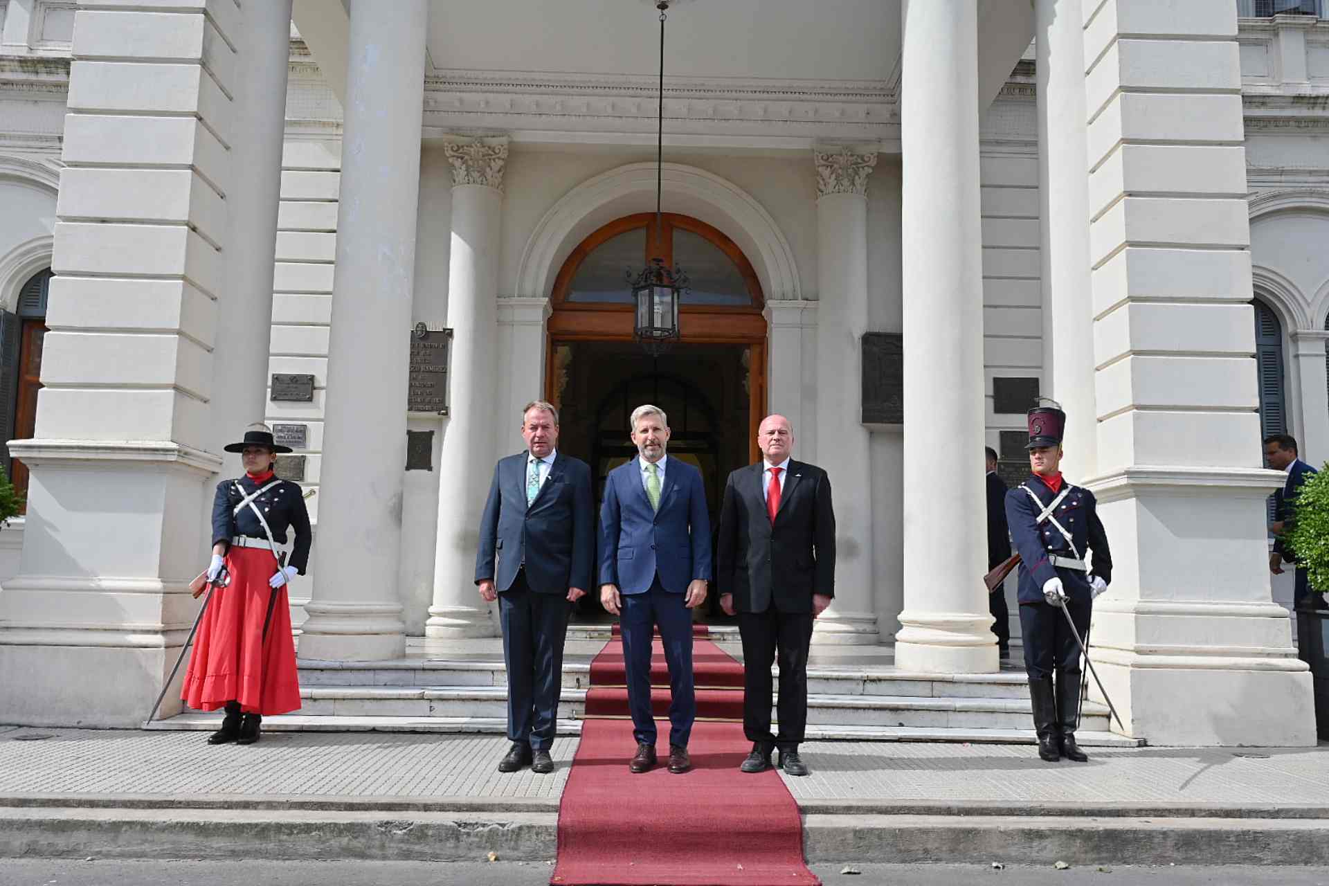 La jornada comenzó en la explanada de Casa de Gobierno, donde el mandatario recibió al diplomático con la Rendición de Honores a cargo de las fuerzas de seguridad. Luego, en el Salón de los Gobernadores, se desarrolló el encuentro bilateral, en el cual se entregó al embajador el decreto que lo distingue como Huésped de Honor.