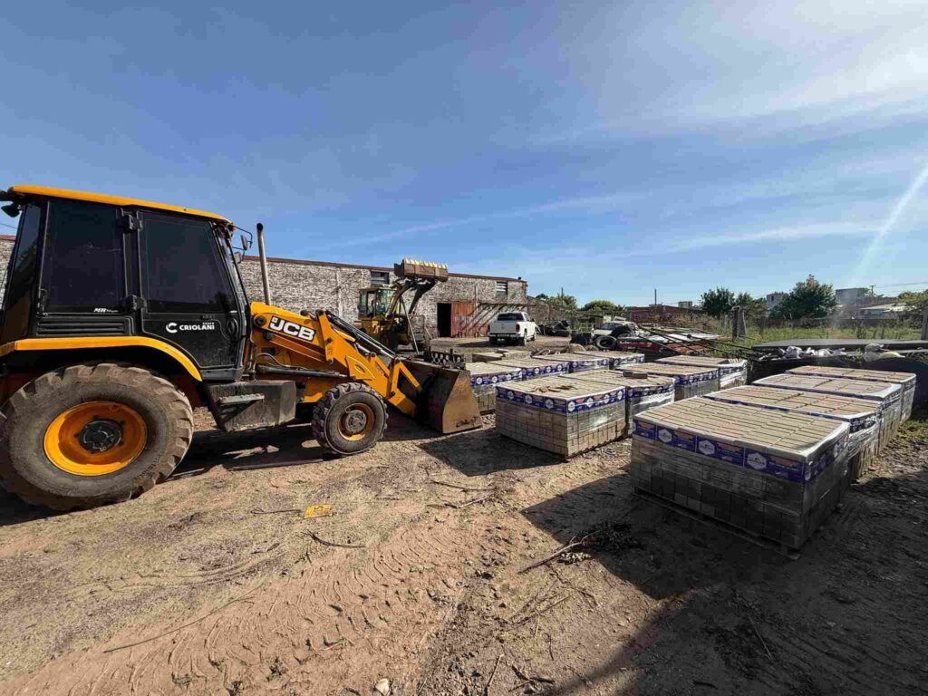 Llegada de materiales para la obra de pavimentación en calle Presidente Illia