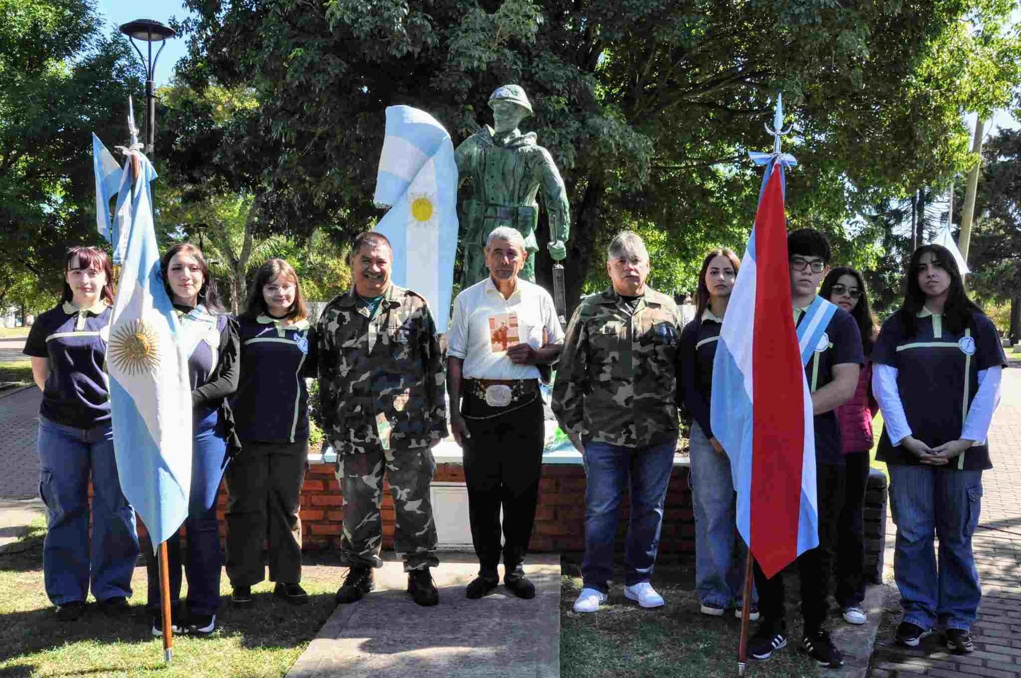 Además, se realizó un minuto de silencio, se entonó el Himno Nacional, la Marcha de Entre Ríos y la Marcha de las Malvinas, y se colocó una ofrenda floral en reconocimiento a los excombatientes.