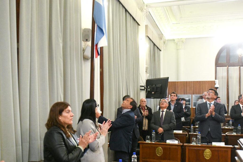La Bandera Nacional fue izada por el senador Casiano Otaegui (Gualeguay- Frente Juntos por Entre Ríos) y la Bandera de Entre Ríos por el senador Víctor Sanzberro (Victoria- Más para Entre Ríos).
