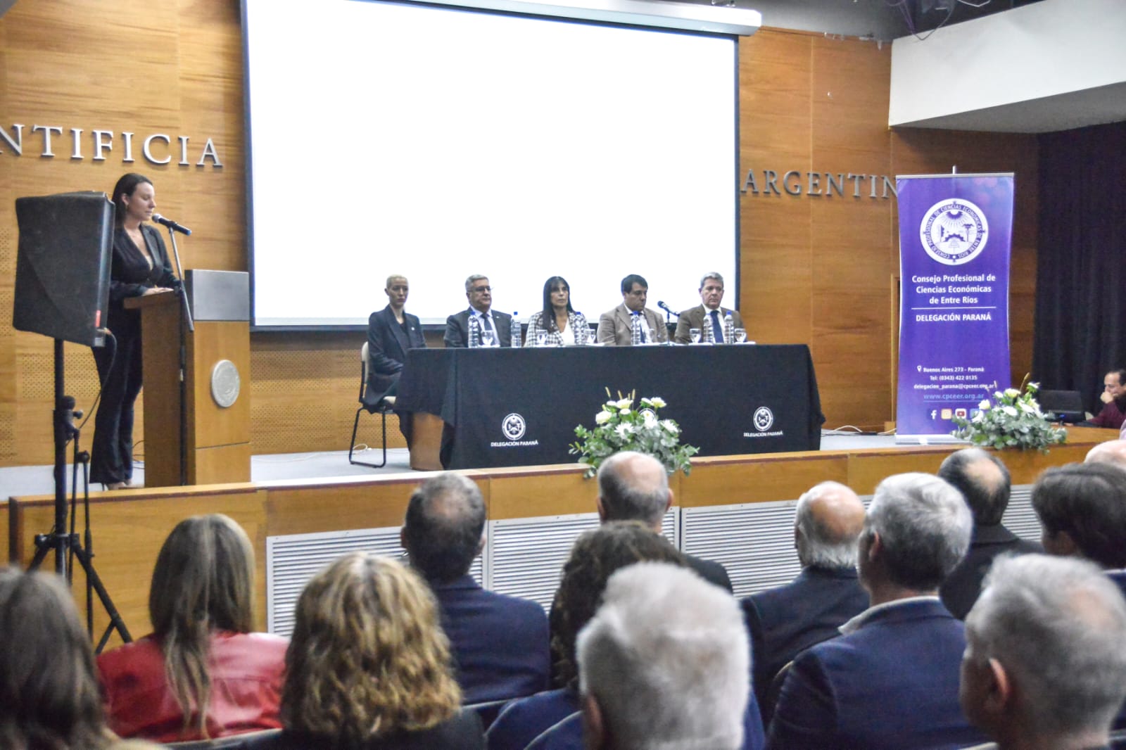 El acto académico tuvo lugar este lunes en el auditorio de la UCA Paraná, y fue encabezado por la vicegobernadora, quien estuvo acompañada por el presidente del Consejo Profesional de Ciencias Económicas de Entre Ríos, Julio César Fochesatto, y por el presidente de la Delegación Paraná del mismo organismo, César Daniel Salomón.