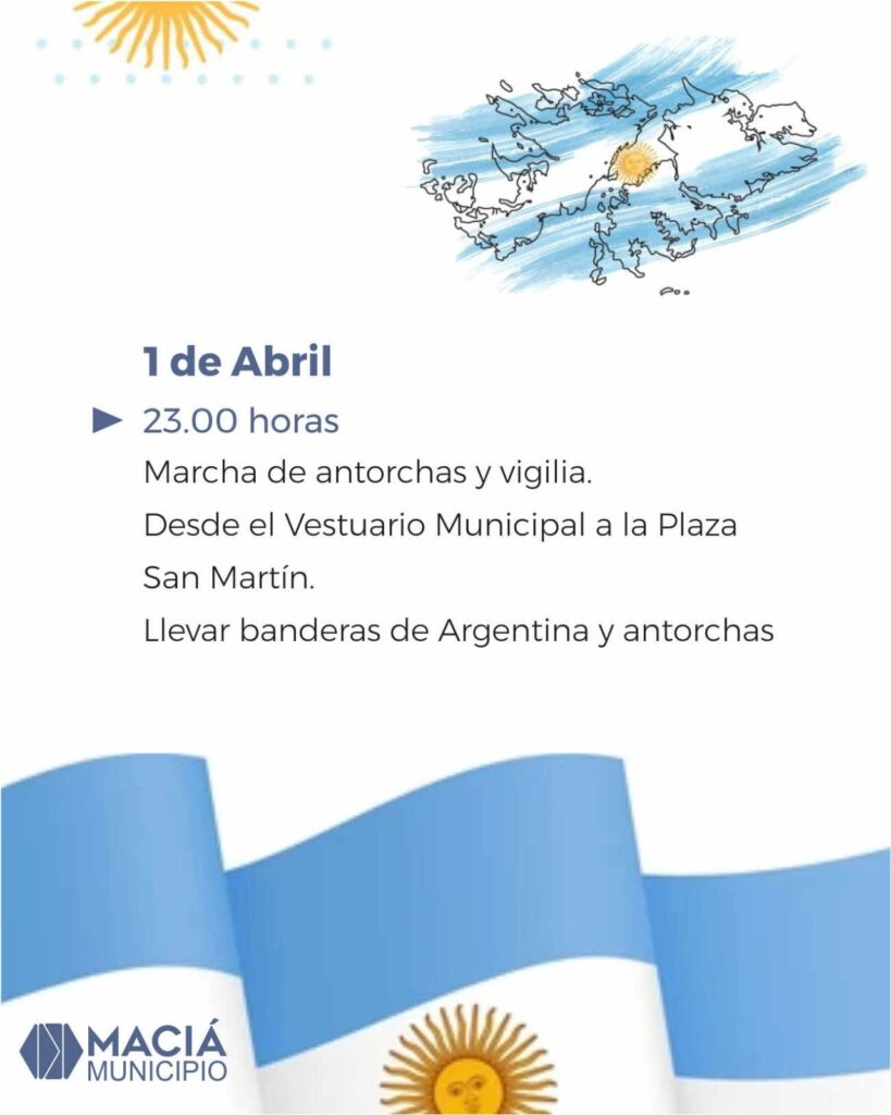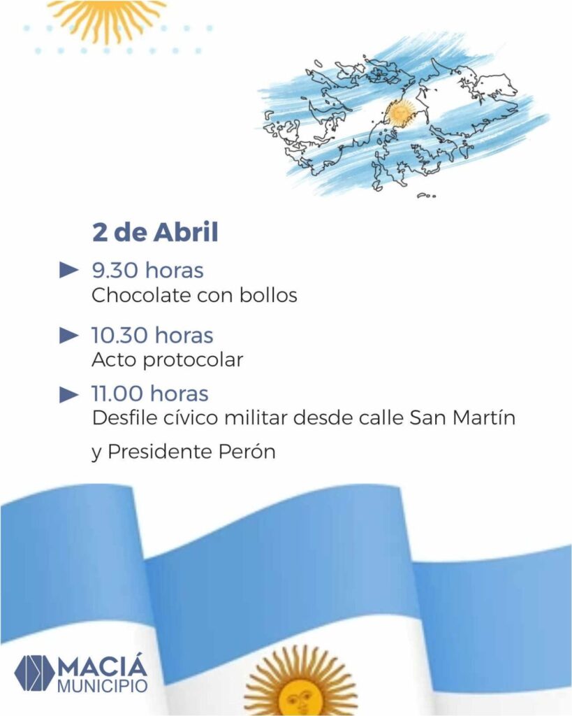 La Municipalidad de Maciá invita a toda la comunidad a participar de las actividades conmemorativas por el Día del Veterano y de los Caídos en la Guerra de Malvinas.