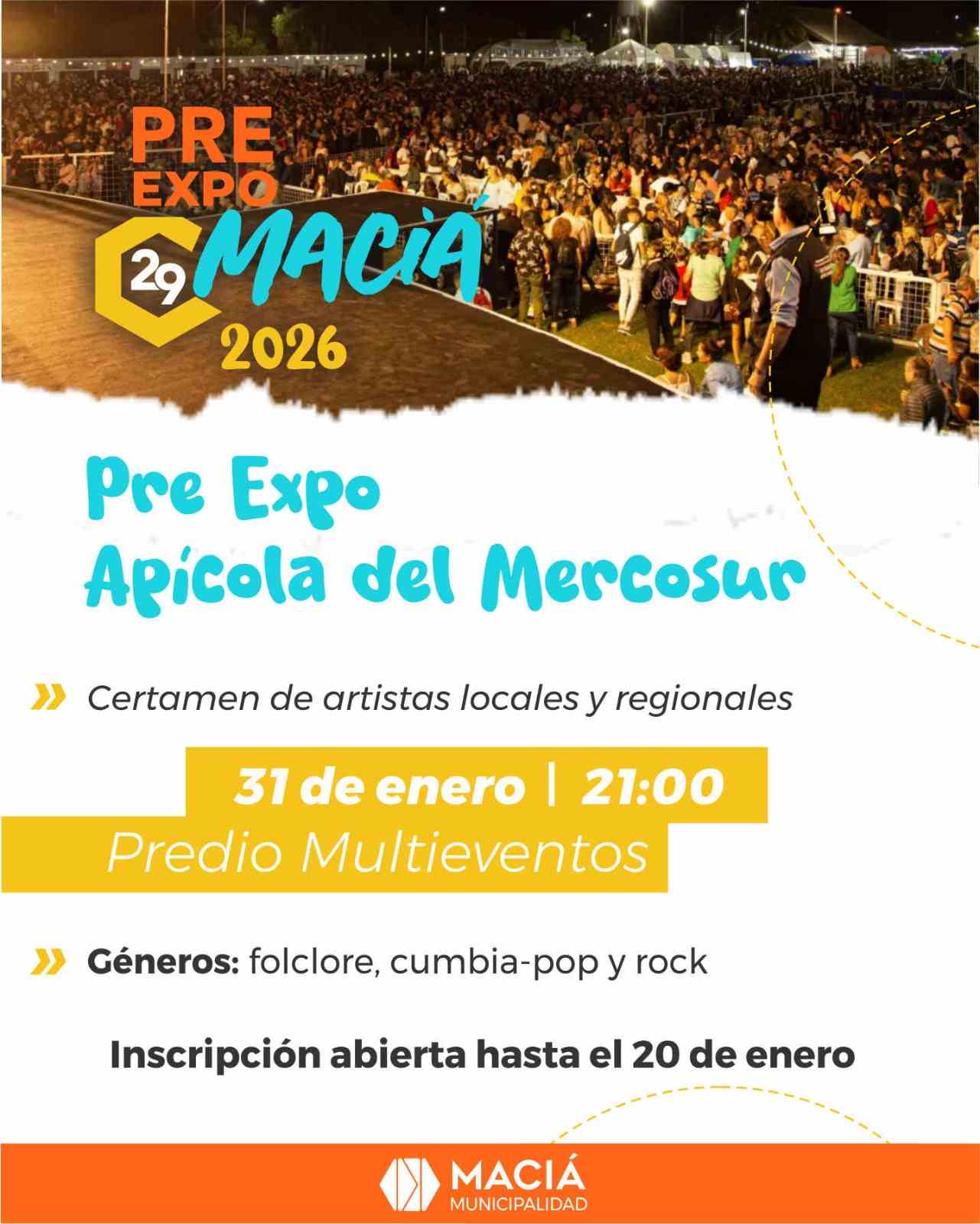El 31 de enero se realizará el Pre Expo Apícola del Mercosur, con artistas locales y regionales.