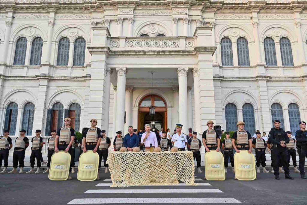 Al enumerar los nuevos instrumentos adquiridos, de los que dijo son «herramientas para proteger a la sociedad de la delincuencia», el gobernador agregó: «Recién comparábamos lo que es el viejo armamento de los grupos especiales con estas nuevas armas que ha adquirido la Policía y, claramente, hay un abismo de diferencia».